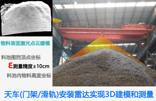 通過激光檢測器對料場進行掃描,通過算法快速計算出物料體積。