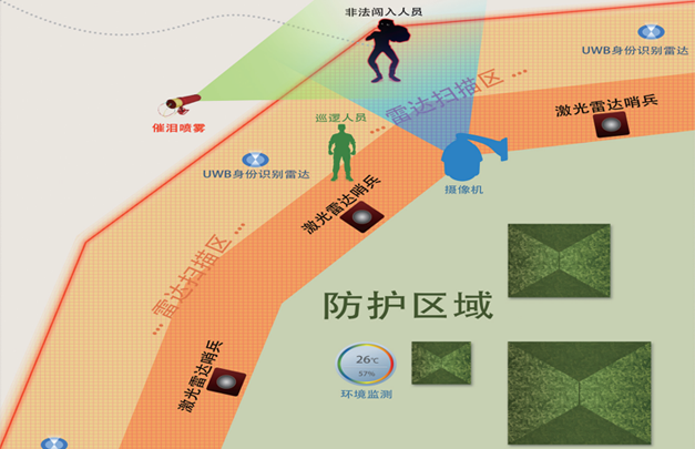 天河電子基于激光雷達(dá)的監(jiān)獄重點(diǎn)區(qū)域目標(biāo)定位監(jiān)管系統(tǒng),旨在彌補(bǔ)視頻監(jiān)控技術(shù)、傳感器報警技術(shù)被動防御的特性和智能圖像分析技術(shù)在環(huán)境應(yīng)用中的局限性,通過激光雷達(dá)主動防御的特性結(jié)合高清視頻監(jiān)控技術(shù),對重點(diǎn)監(jiān)測區(qū)域(如:內(nèi)5米防暴通道)的目標(biāo)進(jìn)行定位、跟蹤、放大、記錄目標(biāo)的運(yùn)動軌跡,同時通知獄警和上級單位進(jìn)行相應(yīng)警情處置。